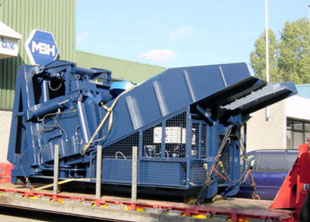 Сминатель автомобильных кузовов изготавливается в "контейнерном" исполнении для транспортировки грузовиками с крюковым захватом.