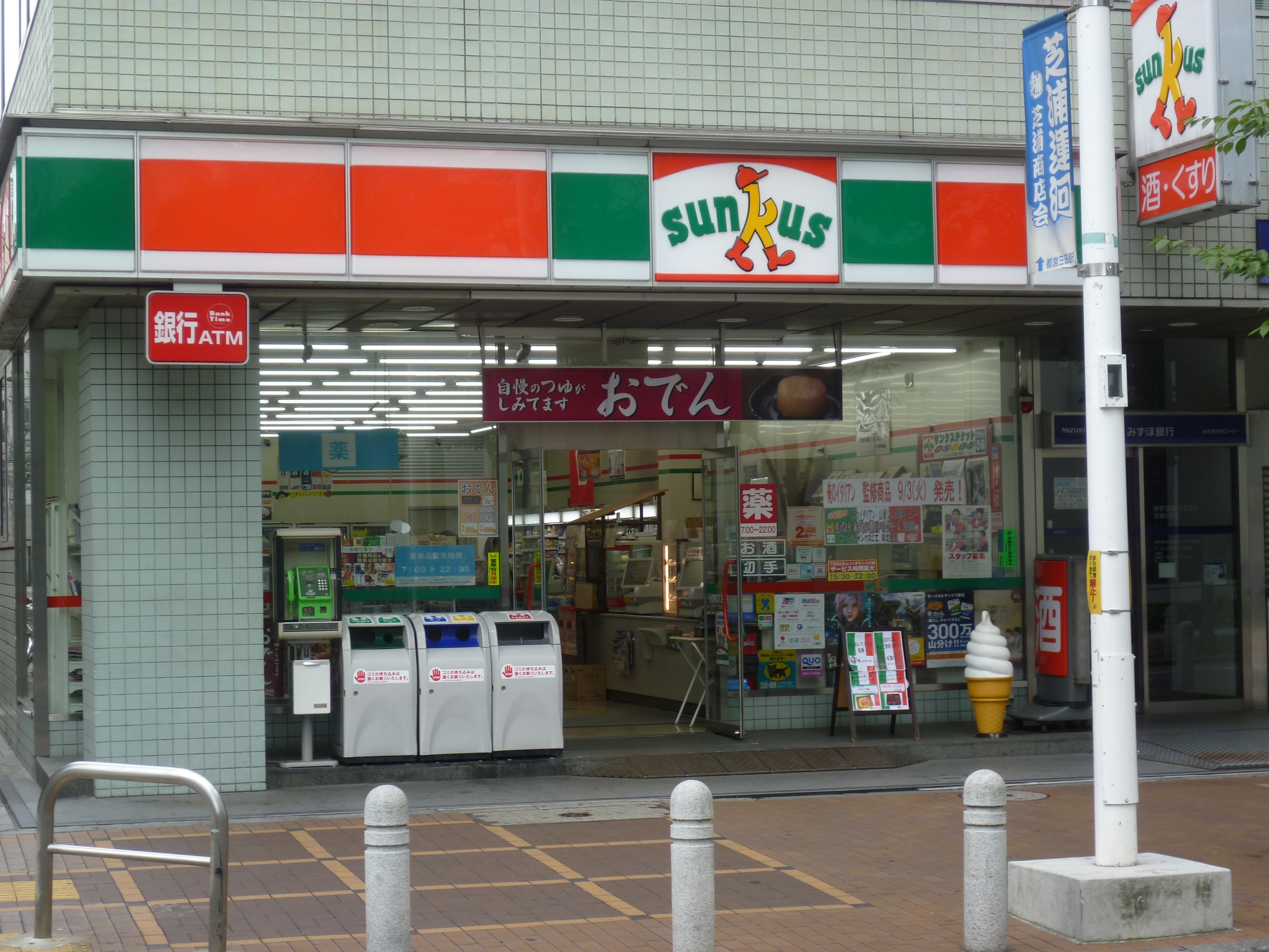 Емкости для раздельного сбора мусора возле магазина шаговой доступности Санкус (Sunkus)