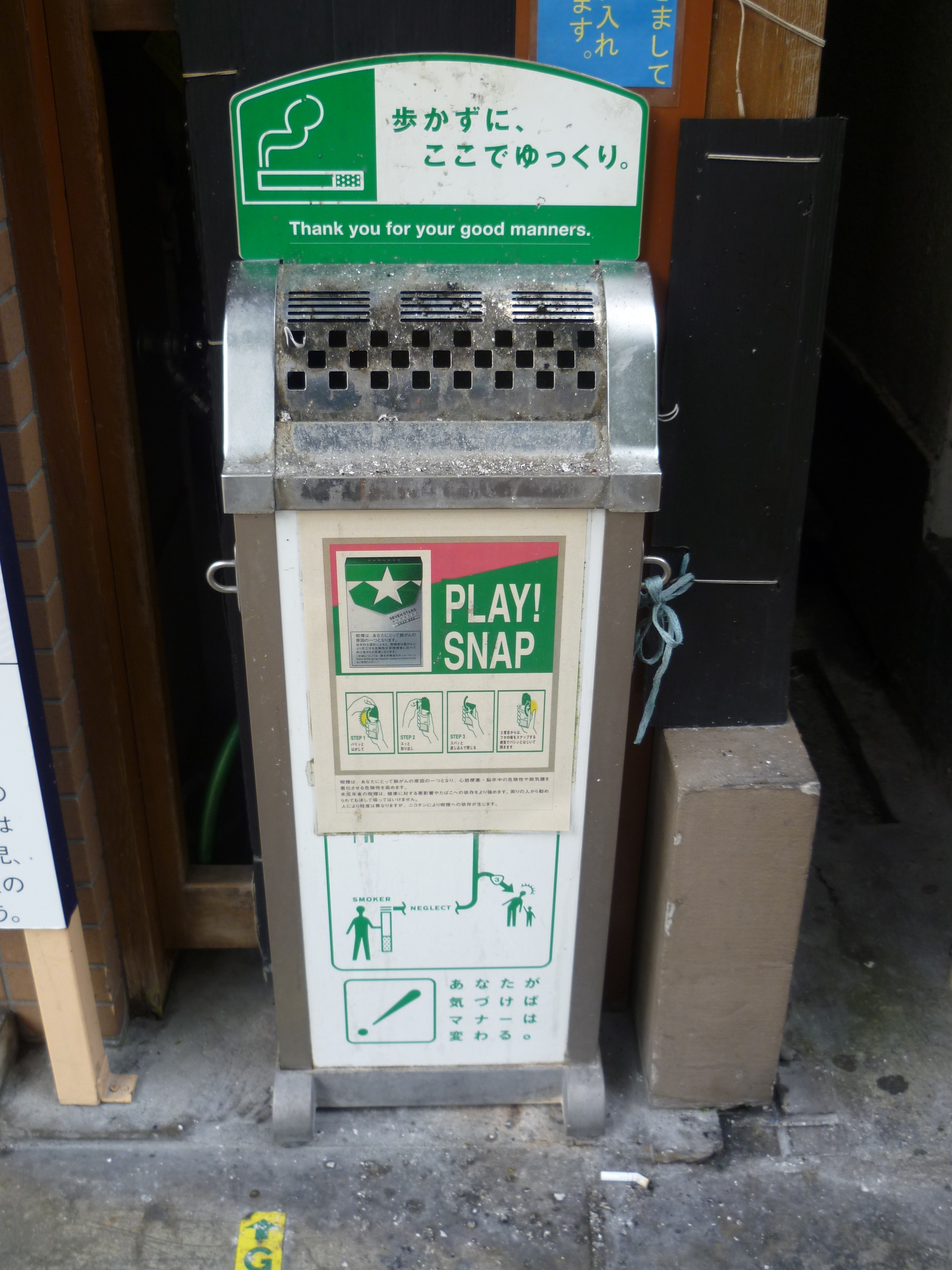 Пепельница, установленная в специальном месте для курения. В Японии запрещено курить везде, кроме специально отведенных для этого местах.