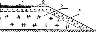 При конструировании насыпи из углеотходов важное место отводится мероприятиям, предупреждающим высокотемпературный саморазогрев. Расчеты пожаробезопасных элементов показали, что самовозгорание углеотходов зависит от их зольности, марки добываемого или обогащаемого угля, энергии активации и некоторых других параметров. Для земляного полотна автомобильных дорог установлена критическая величина отсыпаемого слоя в 5, 2 – 12 м. При превышении этих размеров в теле насыпи из углеотходов предусматривается устройство пожаробезопасных прослоек из связного грунта толщиной не менее 0, 15 – 0, 40 м (рис. 1), либо другим материалом, препятствующим поступлению атмосферного кислорода в структуру углеотходов.